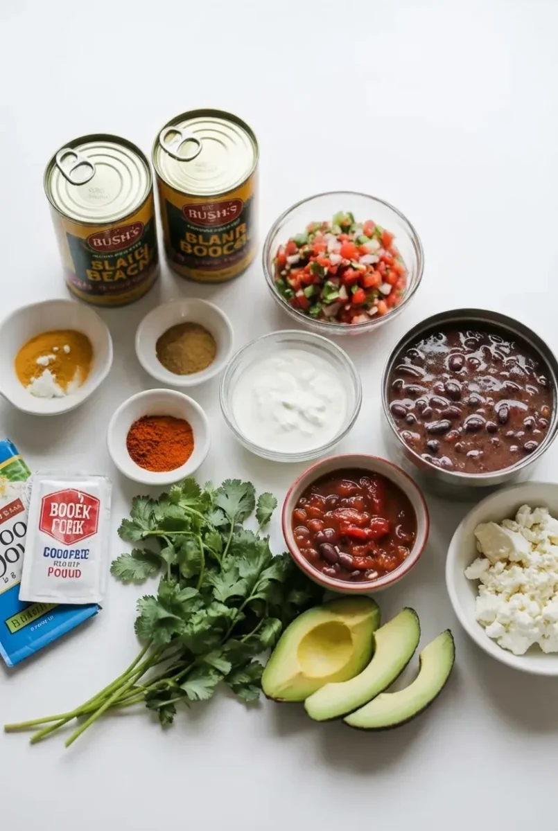 - 2 cans Bush’s seasoned black beans (with liquid)