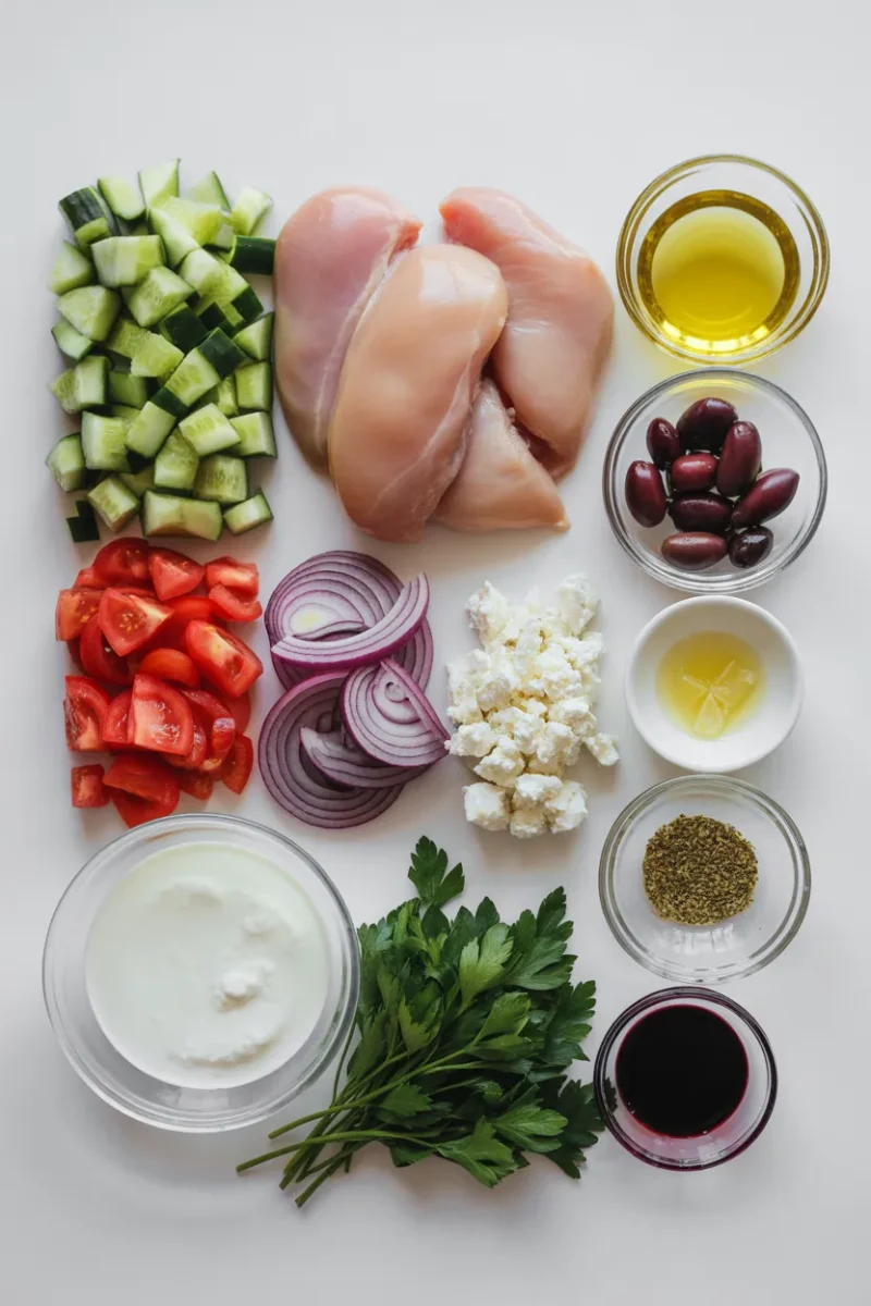 Gather these fresh components for your amazing Greek Chicken Salad with Feta. Quality ingredients truly make a difference.