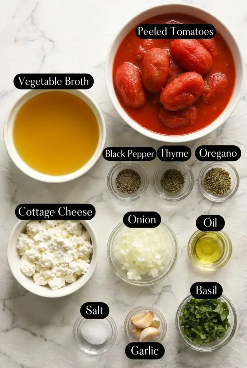 To craft this hearty and healthy High Protein Tomato Basil Soup, gather these essential ingredients: